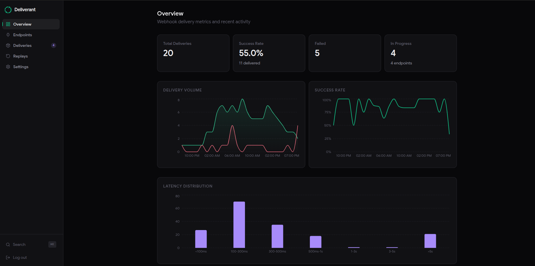 Webhook delivery engine with retry logic, idempotency guarantees and delivery tracking. Built to solve silent failures.